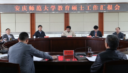 汇报会在行政楼二楼圆桌会议室召开,校党委副书记、校长闵永新教授代表学校致欢迎词,校党委委员、副校长汪时珍教授就我校在教育硕士的政策导向与支持、组织结构与功能、制度建设、教育硕士招生、人才培养方案、教师队伍、研究生课程教学和实践教学等方面的进展和实效做了全面汇报,并重点介绍了我校教育硕士培养方案的“四实”、“论文包”管理和顶岗支教等特色做法,受到专家组的高度评价。随后专家组一行检查了我校教育硕士培养方面的管理制度、建设材料以及教师备课材料,实地考察了我校教师教育中心,并现场抽听了学科教学(英语)教育硕士的一节课。