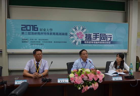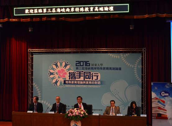 2016年11月18日至21日,由台湾屏东大学、中国岭南师范学院主办,台湾特殊教育协会、台湾优资教育协会、台湾沟通障碍教育学会、台湾屏东特殊教育学校协办,台湾屏东大学特殊教育学系、台湾特殊教育中心承办的“第三届海峡两岸特殊教育高端论坛”在台湾屏东大学召开。来自大陆和台湾的特殊教育专家学者以及特殊教育学校代表共200多人参加了本次论坛。我校教育学院曹长德院长、郭启华教授、赵子刚博士应邀参加了本次会议。