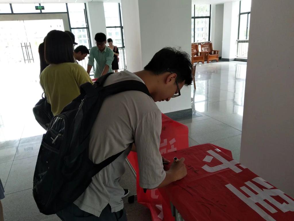 的同学们纷纷响应,参加本次活动,用笔杆写下了自己的姓名。