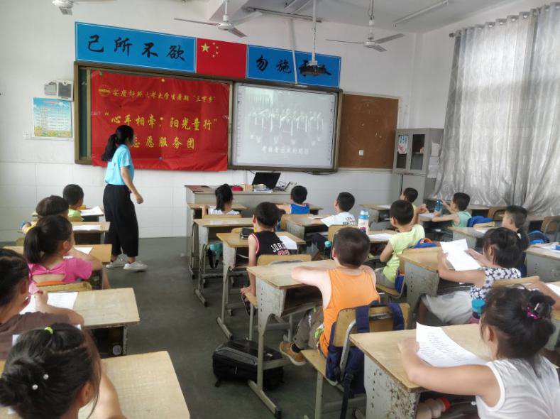 “感恩的心,感谢有你,伴我一生,让我有勇气做我自己......”听到熟悉的曲目《感恩的心》从夏令营教室里传出,走进教室一探究竟,是支教大学生带领孩子们进行的手语教学课。为使孩子们了解手语,用一种无声的语言表达感恩,7月22日,安庆师范大学六合彩即时开奖