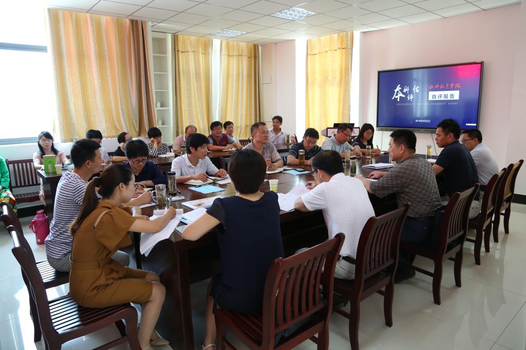 对于本科审核评估工作高度重视,党政领导、全体成员团结一致、上下同心、态势很好,汇报PPT课件精美,所提供的支撑材料比较规范,基本达到审核评估要求。同时也提出了存在的问题:特色不亮,凝练不够,站位不高,并提出应从“五个度”来进一步深化“6+1”评估指标材料建设。接着,与会的其他评估专家依次结合各自的评估检查情况,分别从学院的自评报告、定位与目标、教研室建设、教学资源、教学改革、学生发展、试卷材料、论文材料、调课记录、听课记录等方面提出了进一步具体改进和完善的意见和建议。最后,曹长德代表学院对专家组提出的意见与建议表示会认真总结、虚心接受,进一步仔细分析查找存在的问题,进一步修改完善学院自评报告,突出专业特色,对已取得的成果进行有效分析,抓紧时间制定改进方案,切实认真做好本科教学审核评估中的各项准备工作,主动迎接接下来的省级和教育部专家的审核评估工作。