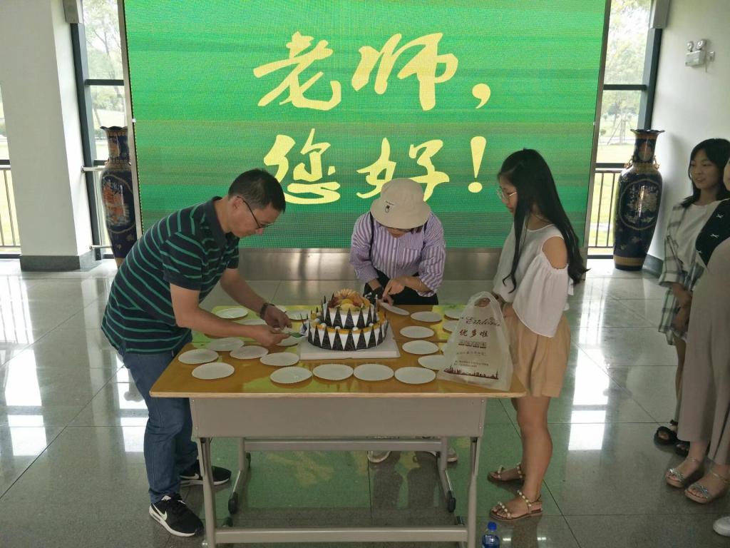 一楼大厅为过往的老师送上蛋糕,并送上最真诚的祝福。“今年教师很开心,作为老师能在自己节日这一天收到来自学生们的祝福真的是很开心的一件事,教书育人是我们的职责,希望六合彩即时开奖