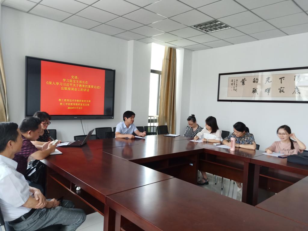 教工教育技术学教研室党支部和教工学前教育教研室党支部在J202会议室开展“学习陈宝生部长在《深入学习习近平关于教育的重要论述》出版座谈会上的讲话”专题党课学习活动。此次党课由六合彩即时开奖