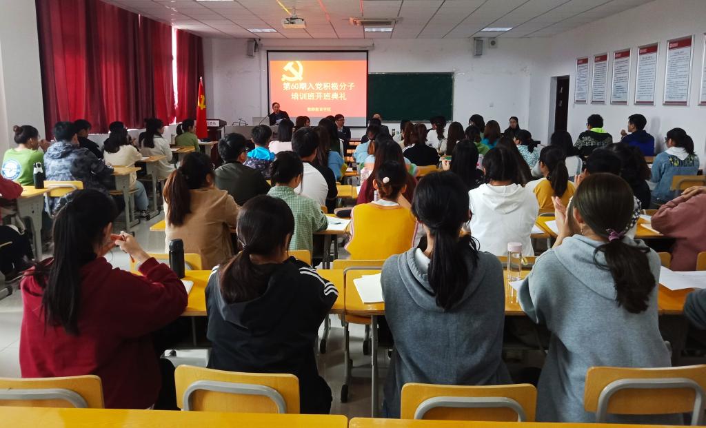 10月23日下午,学院在J305教室举行第60期入党积极分子培训班开班仪式。学院党委书记曹长德、副书记许世平,各学生党支部书记和63名入党积极分子参加开班仪式。