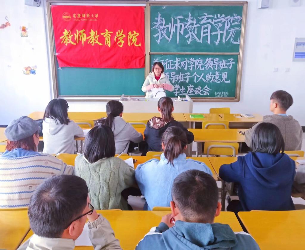 在J212教室召开“学生代表对学院领导班子和领导班子个人的意见”座谈会。座谈会由学院辅导员孙群主持,各年级各专业学生代表参会。