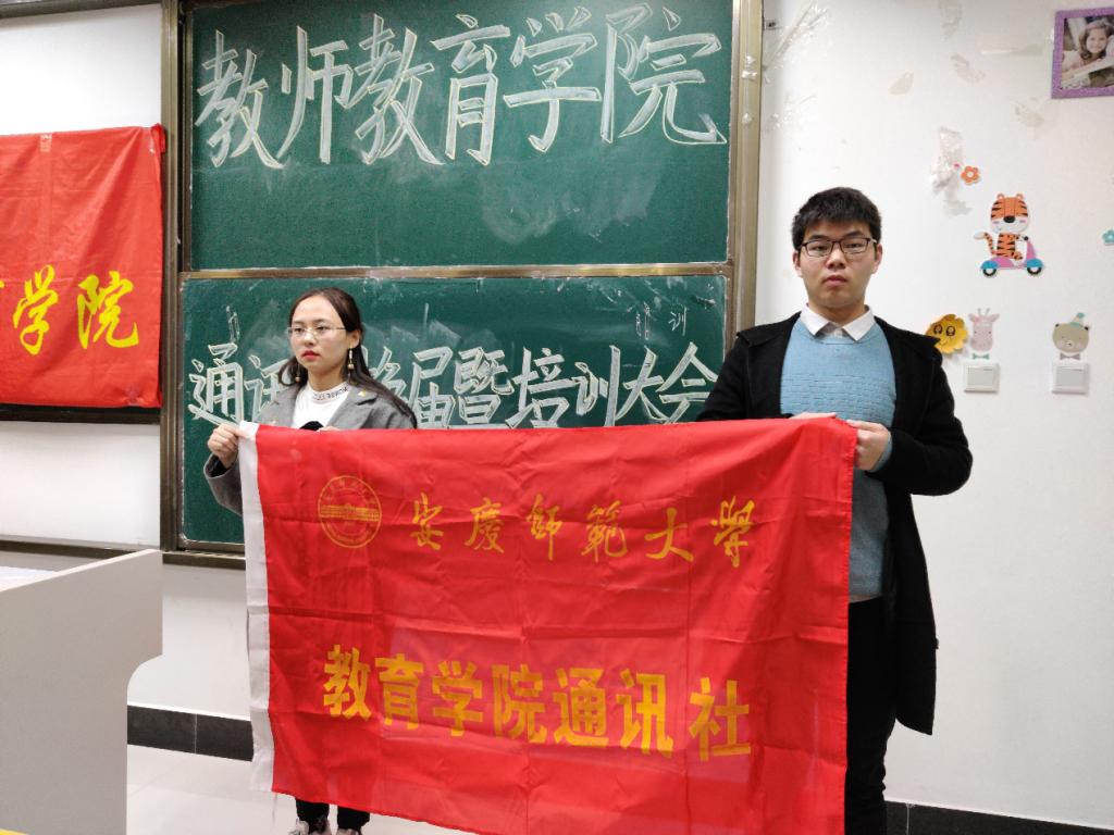 在J221教室举行通讯社换届暨培训大会。会议邀请了传媒学院的胡维与王欣同学为大家分享新闻采写的经验,全体新老通讯社成员参加此次大会。