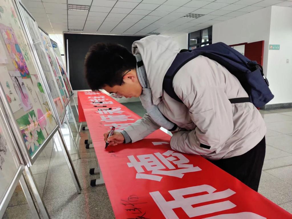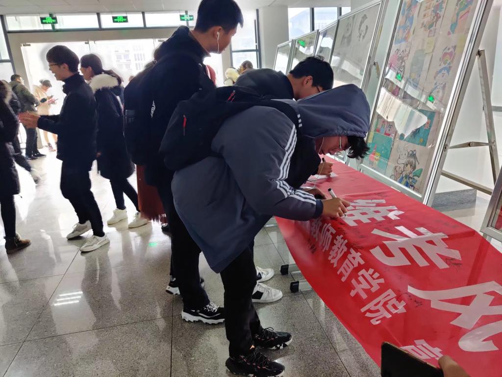同学们深刻认识到了学院对于学生诚信意识的培养、“诚信应考”的重视及对作弊行为的坚决打击,纷纷表示要诚实应对考试,杜绝一切作弊行为。随后,大家在条幅上签下自己的名字。经过一个学期的学习,检查学习情况的期末考试就要来临,我们一定要尊重考试,尊重学问,尊重对手,尊重自己,让我们一同高呼:“诚信考试,从我做起!” 图/程文彦 文/王延航