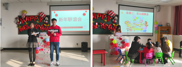 特殊教育专业自闭症服务平台的新年联欢会现场,特殊教育专业教师、本科生、研究生以及六位自闭症小朋友和他们的家长相聚在一起,共同庆祝即将到来的新年。
