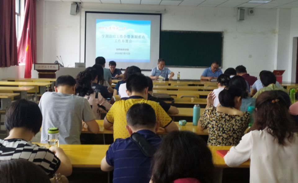 院长吴云助传达了学校学期工作总结及暑期重点工作布置会的会议精神,从党建和事业发展两个方面对学院上半年工作进行了总结,肯定了取得的成绩,并对学院暑期重点工作进行布置。他指出,暑期在继续做好疫情防控的基础上,全院要集中力量做好政治巡视整改工作,积极推进专业认证整改、一流专业申报、博士点建设、各类项目与奖项申报、教学总结、顶岗支教、学生社会实践、毕业生就业等工作,希望全体教职工按照学校要求,统一行动、步调一致把各项工作落实好。