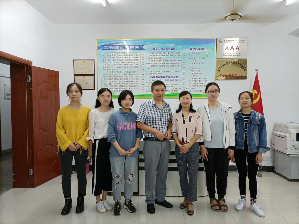 9月15日,2017级应用心理学专业6名学生,在应用心理学专业负责人宋志英的带领下,来到安庆市明康社会工作发展中心开展实习工作。
